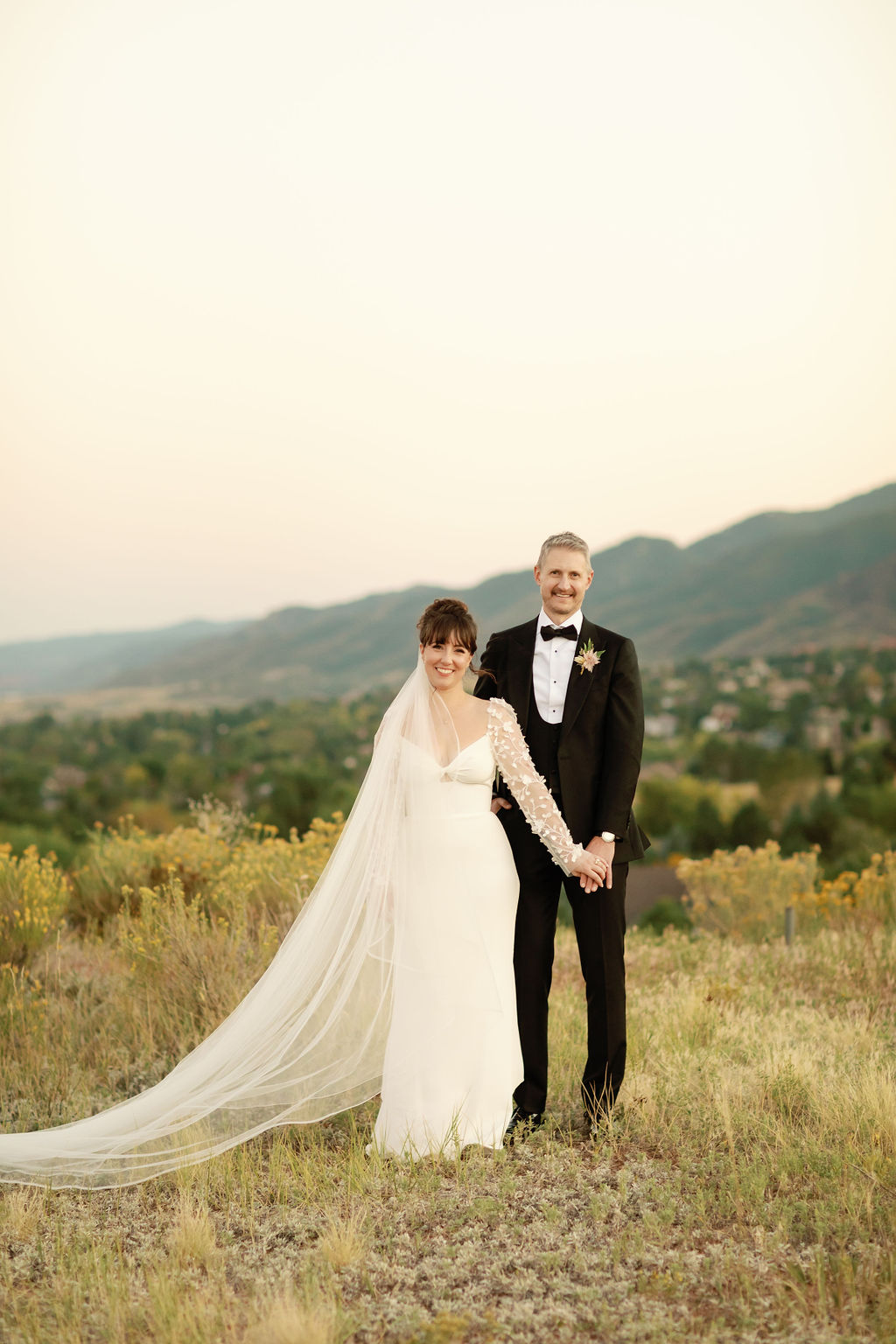 Christine and Kyle’s Colorado wedding at The Manor House featured mountain views and modern vibes. The bride wore a twist neckline gown with floral embroidered sleeves. Bridesmaids dressed in elegant olive green gowns. The groom’s side wore classic black bow tie tuxedos. Pretty floral arrangements included anemones, dahlias, dusty peach and pink roses, and calla … Read More