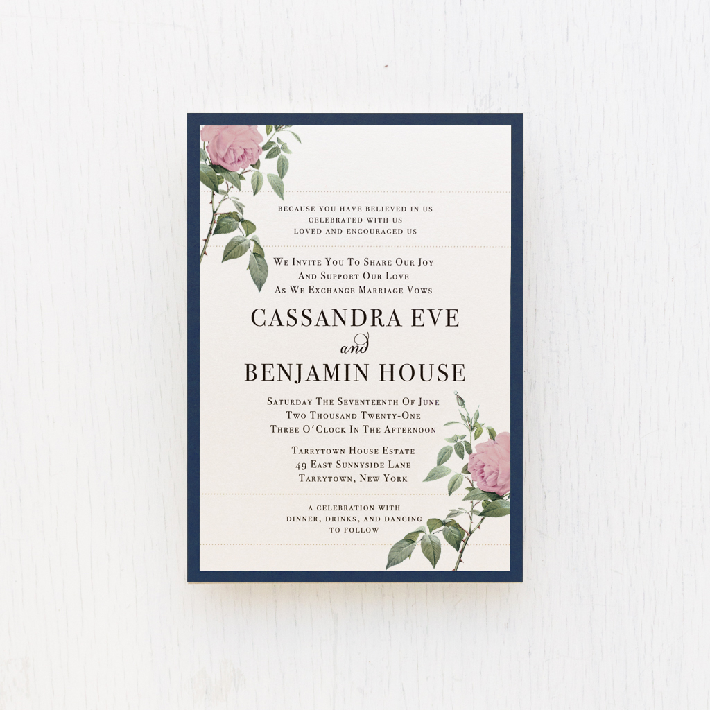 Perfect for a dusty rose, mauve and navy wedding color palette! Ask us how to customize Ivory & Blush Floral to get this look.