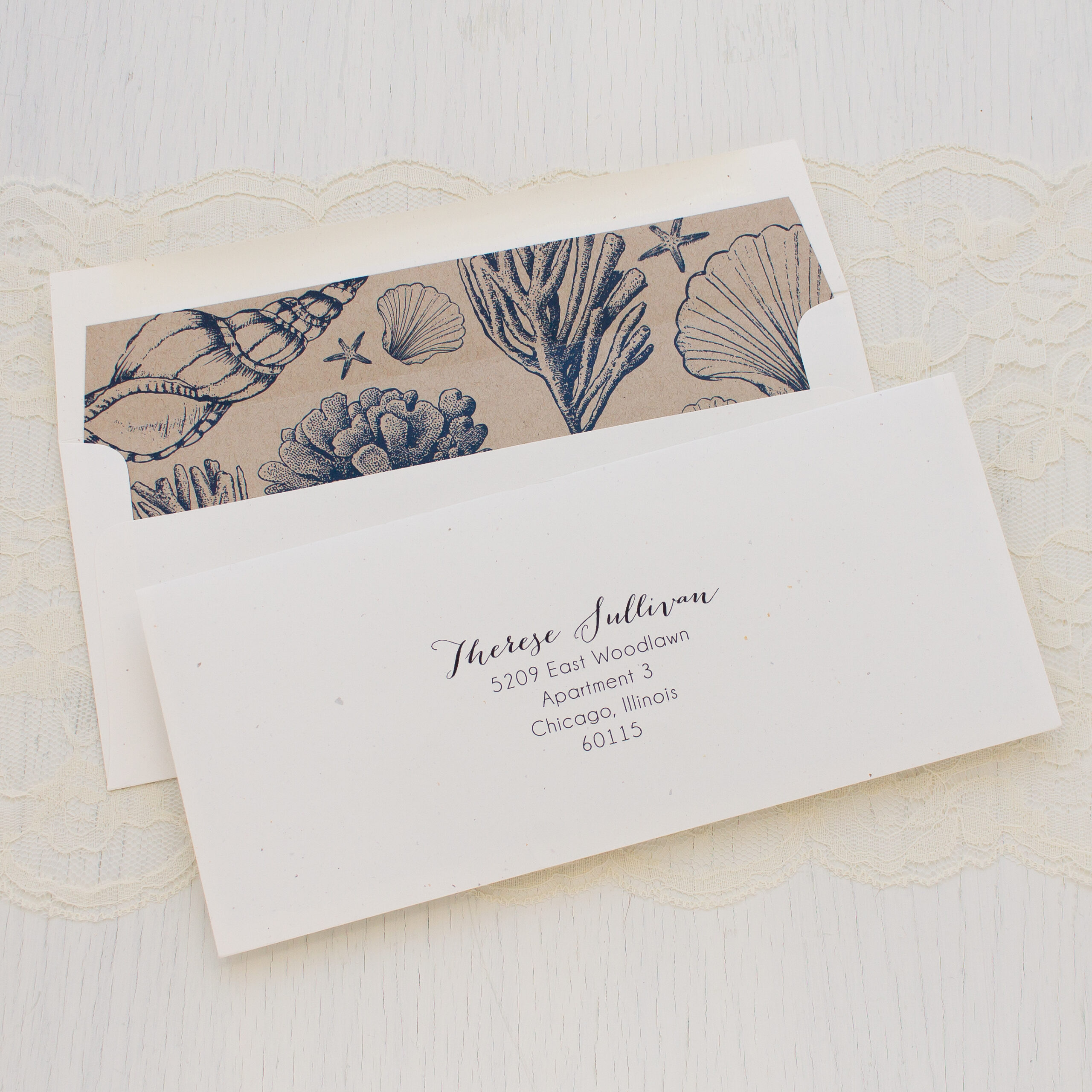 • Patterned envelope liner printed on taupe paper