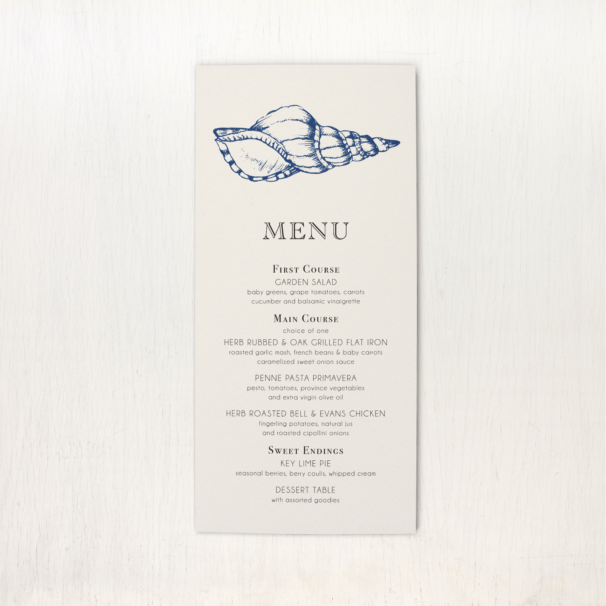 Delight your guests with our beach bridal shower invitations. Featuring navy sea shell illustrations with simple fonts, they set the perfect tone for your tropical or nautical bridal shower brunch.