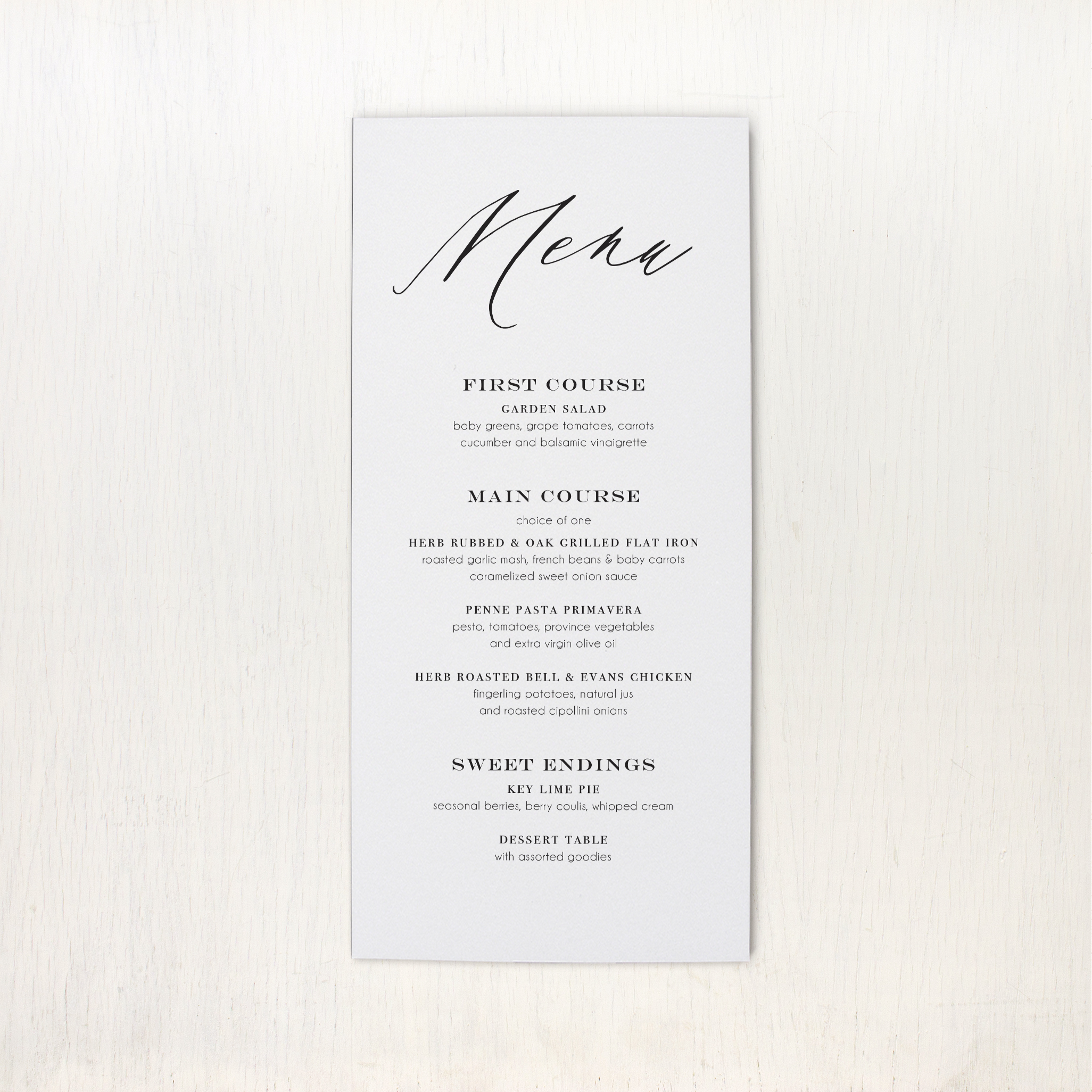 Delight your guests with these modern black & white bridal shower invitations. These cards come fully assembled with a shimmery white envelope liner. Add on envelope printing to mail your invites in style. Shower the bride with matching day of stationery items like menus, favor tags, place cards, and more!