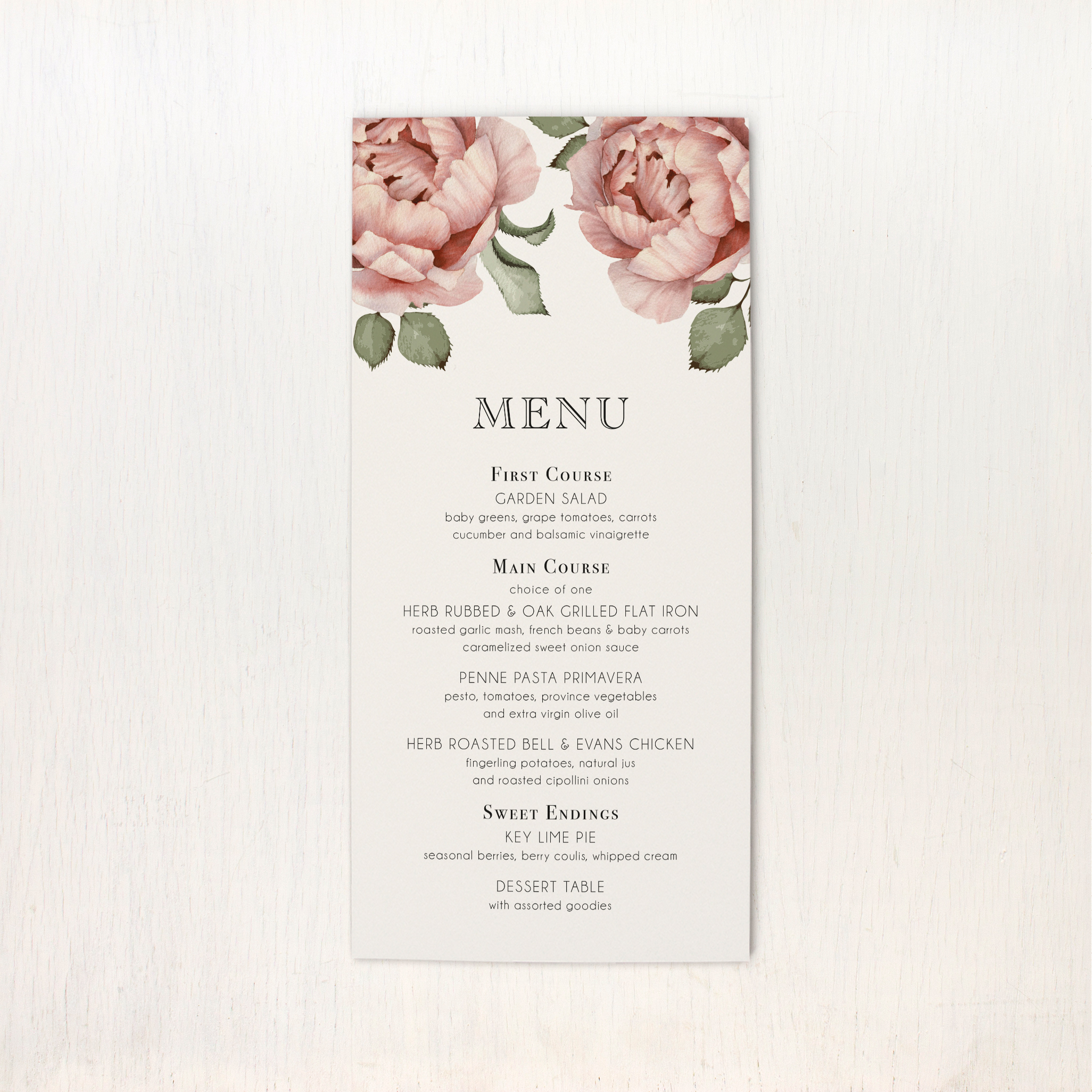 Our unique long invitations are printed on luxe heavyweight paper with a pearl shimmer finish, offering a touch of vintage flair. These cards come fully assembled with a matching hand crafted envelope liner.