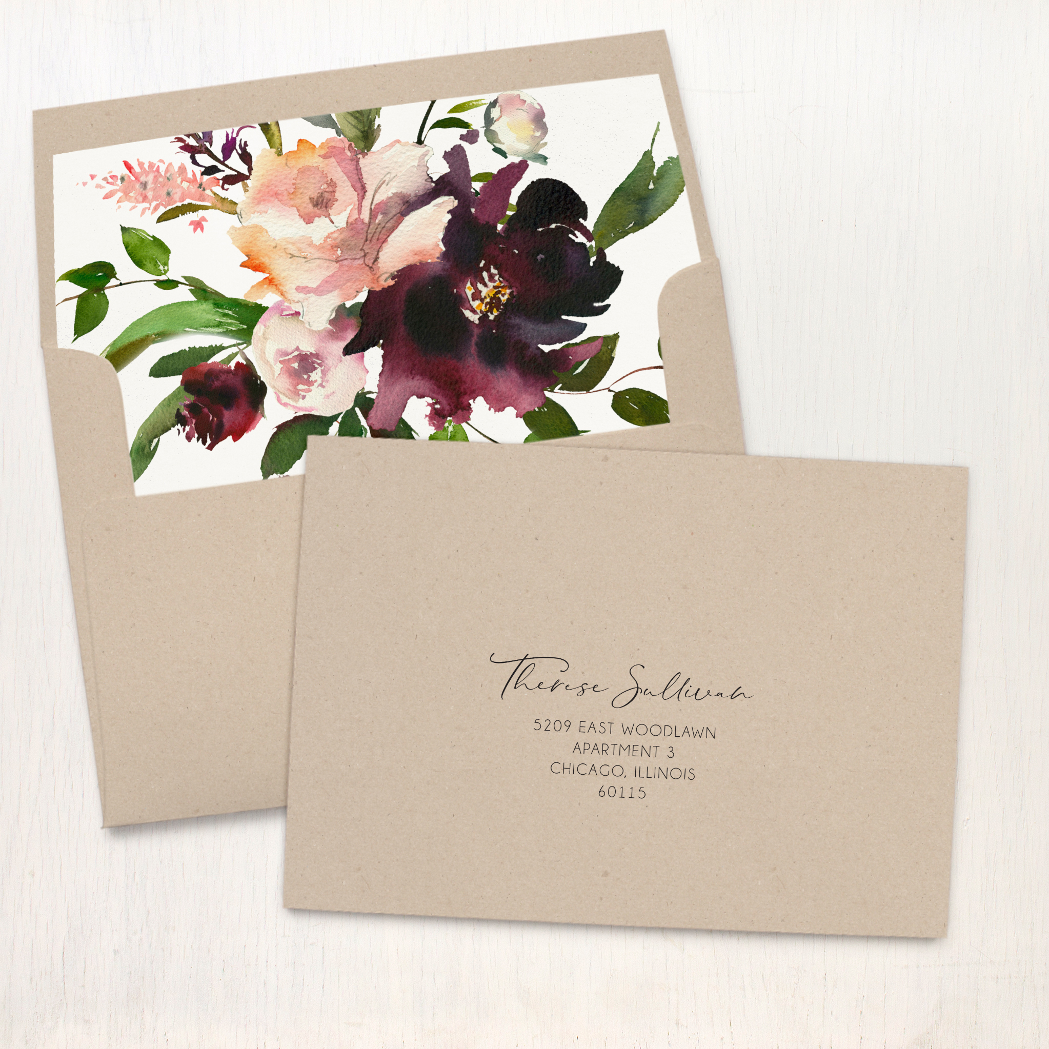 - Taupe solid envelope w/ floral envelope liner