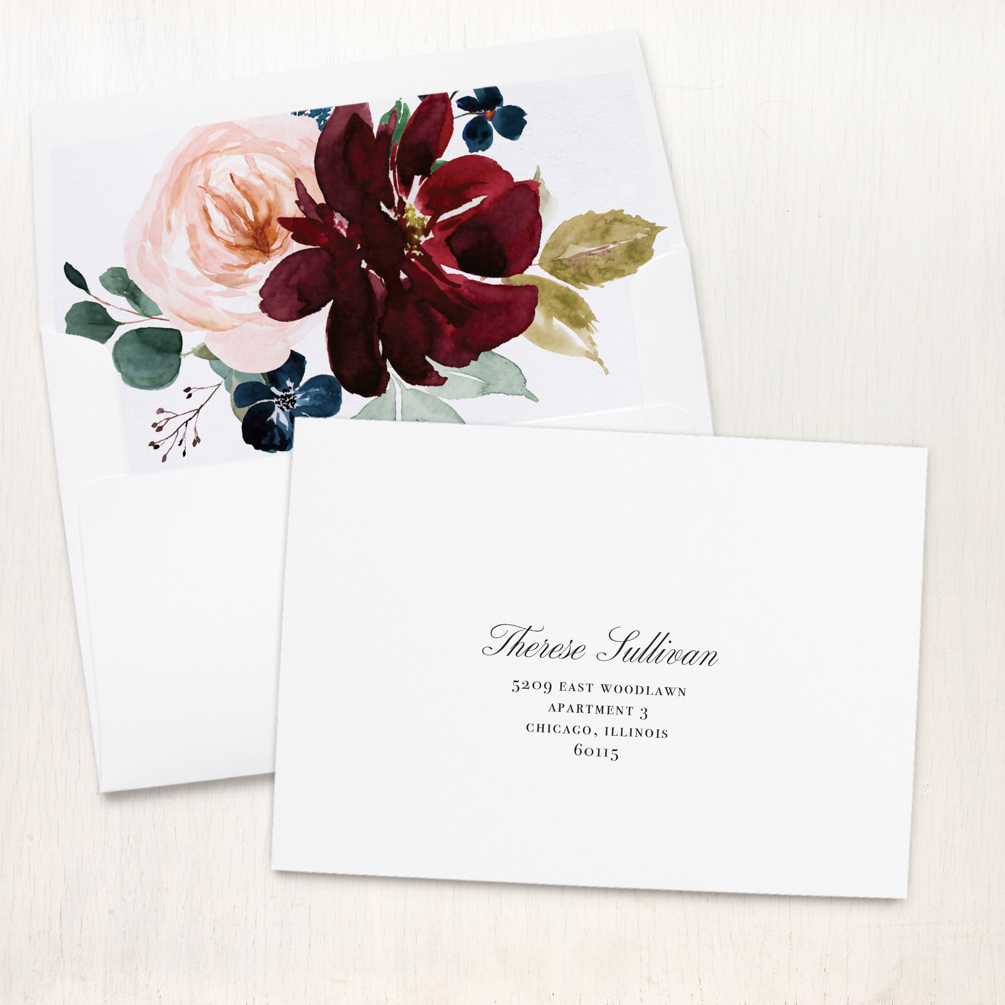 - White solid envelope w/ floral envelope liner