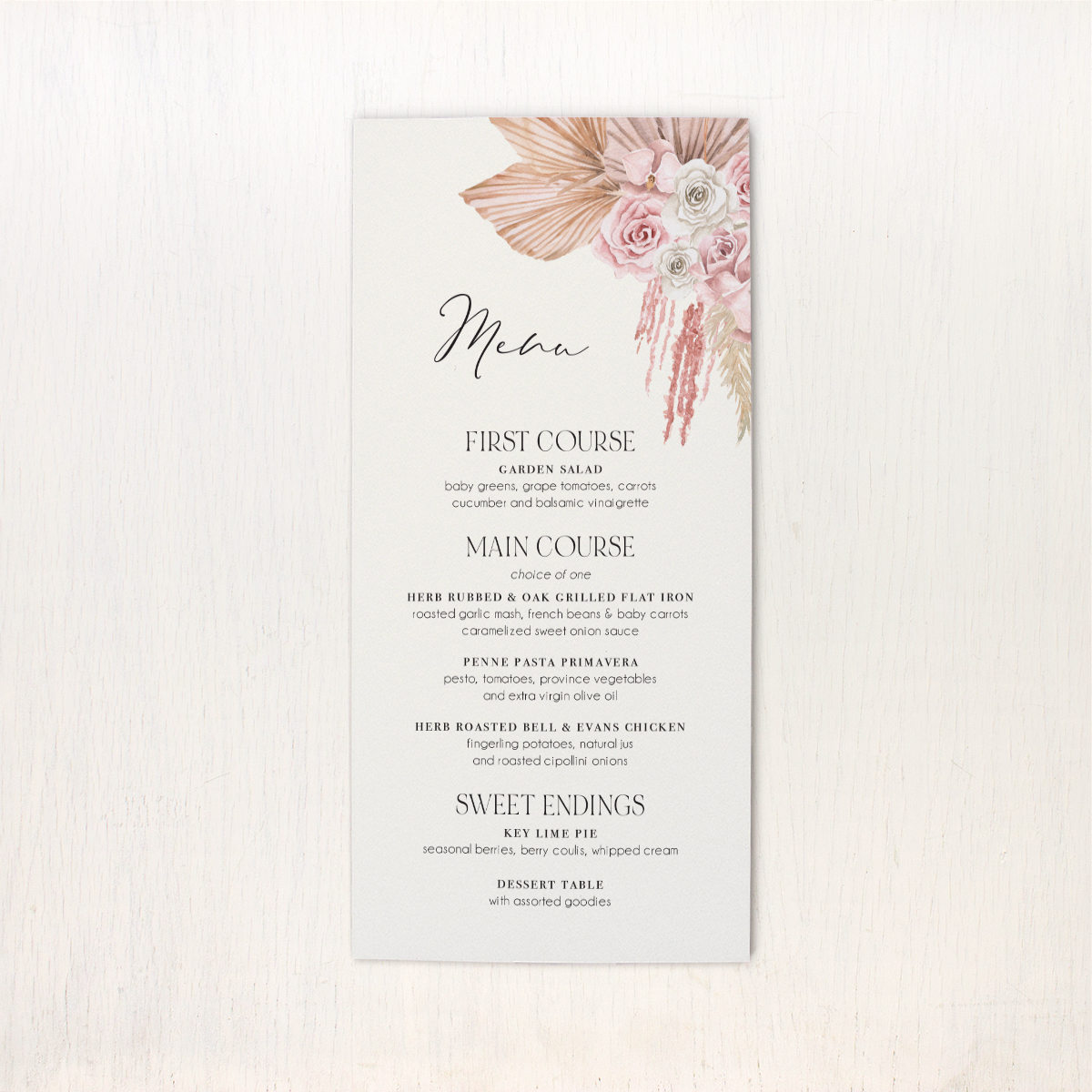 Delight your guests with these dusty rose boho bridal shower invitations. These cards come fully assembled with matching floral envelope liner. Add on envelope printing to mail your invites in style. Shower the bride with matching day of stationery items like menus, favor tags, place cards, and more!
