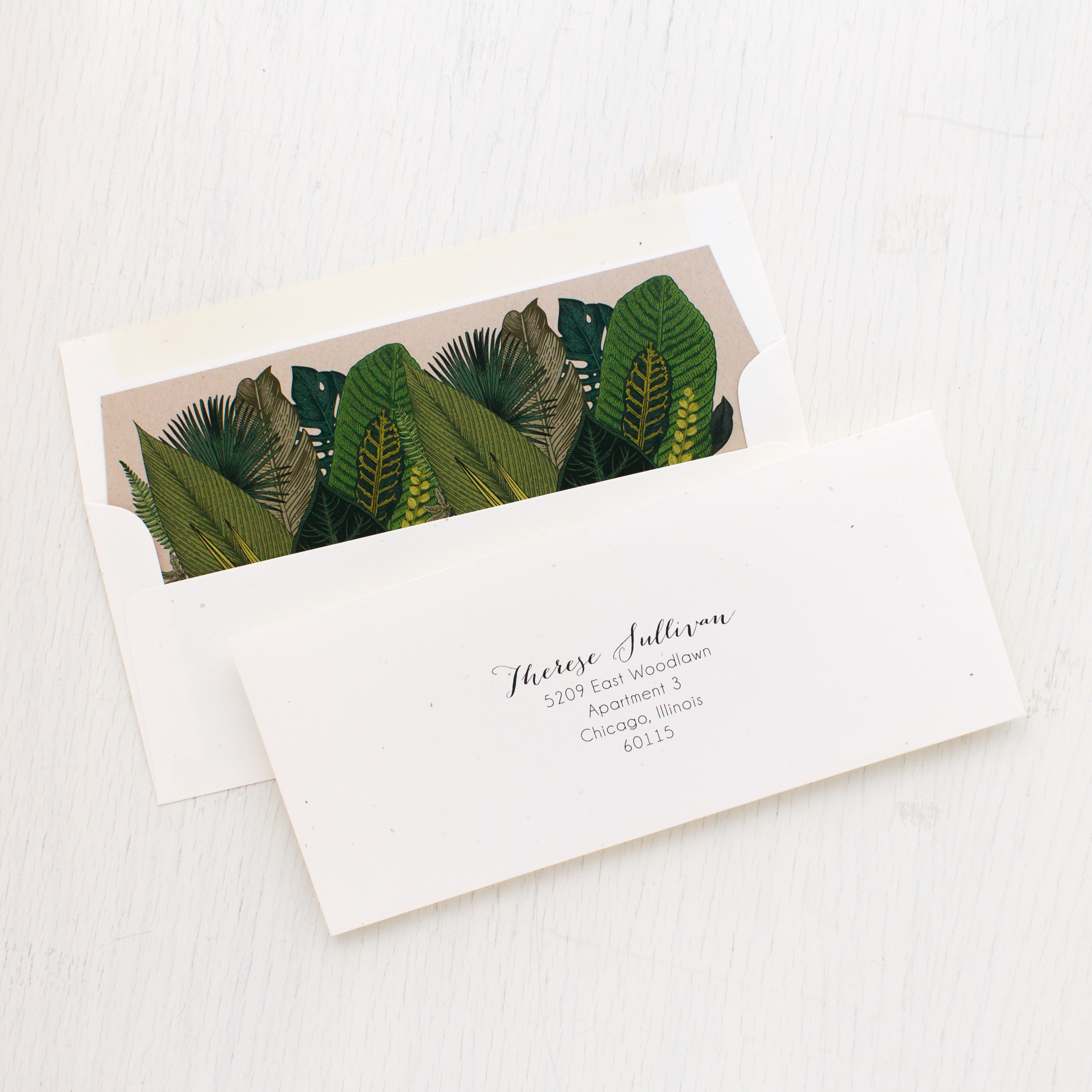 - Patterned envelope liner printed on taupe paper