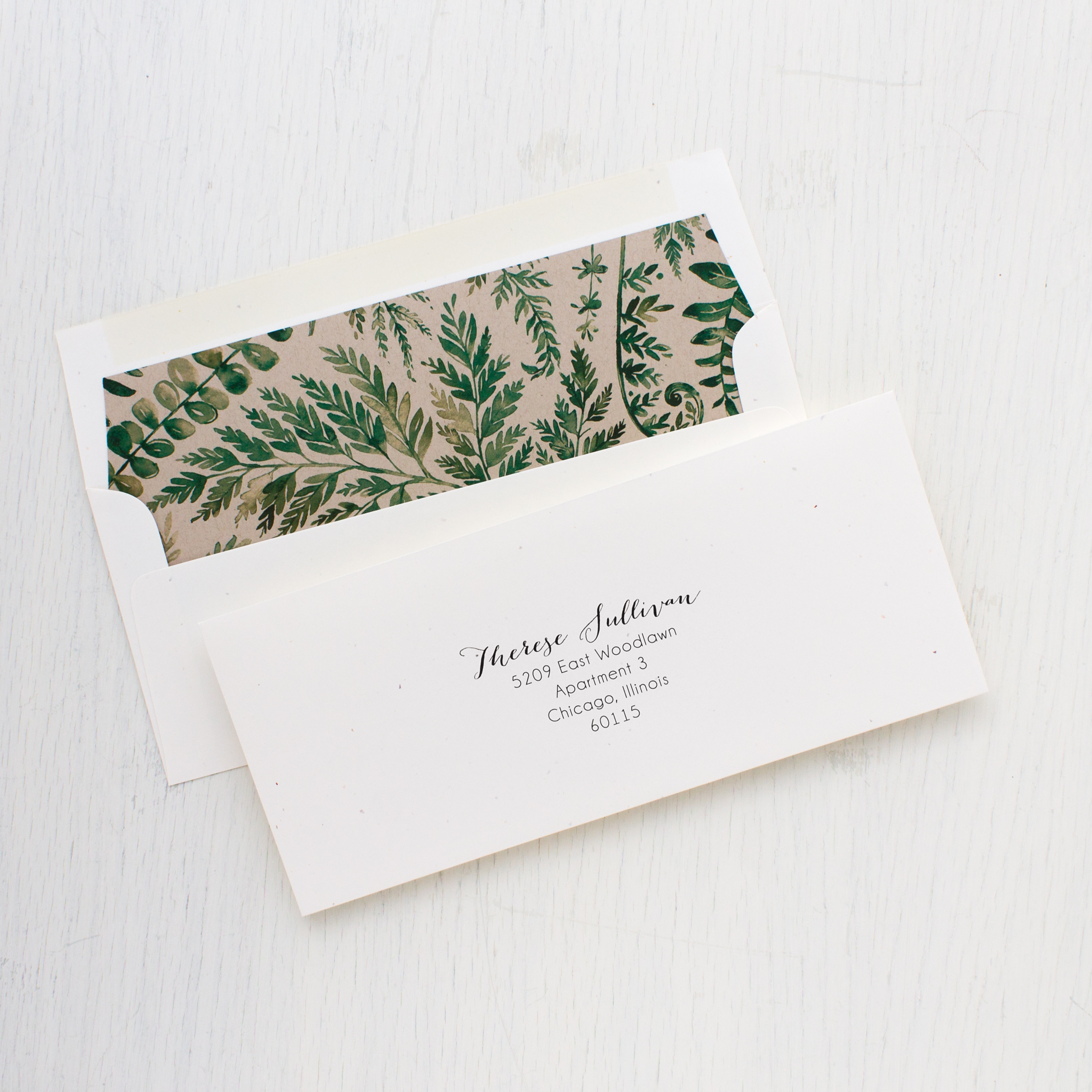 - Patterned envelope liner printed on taupe paper