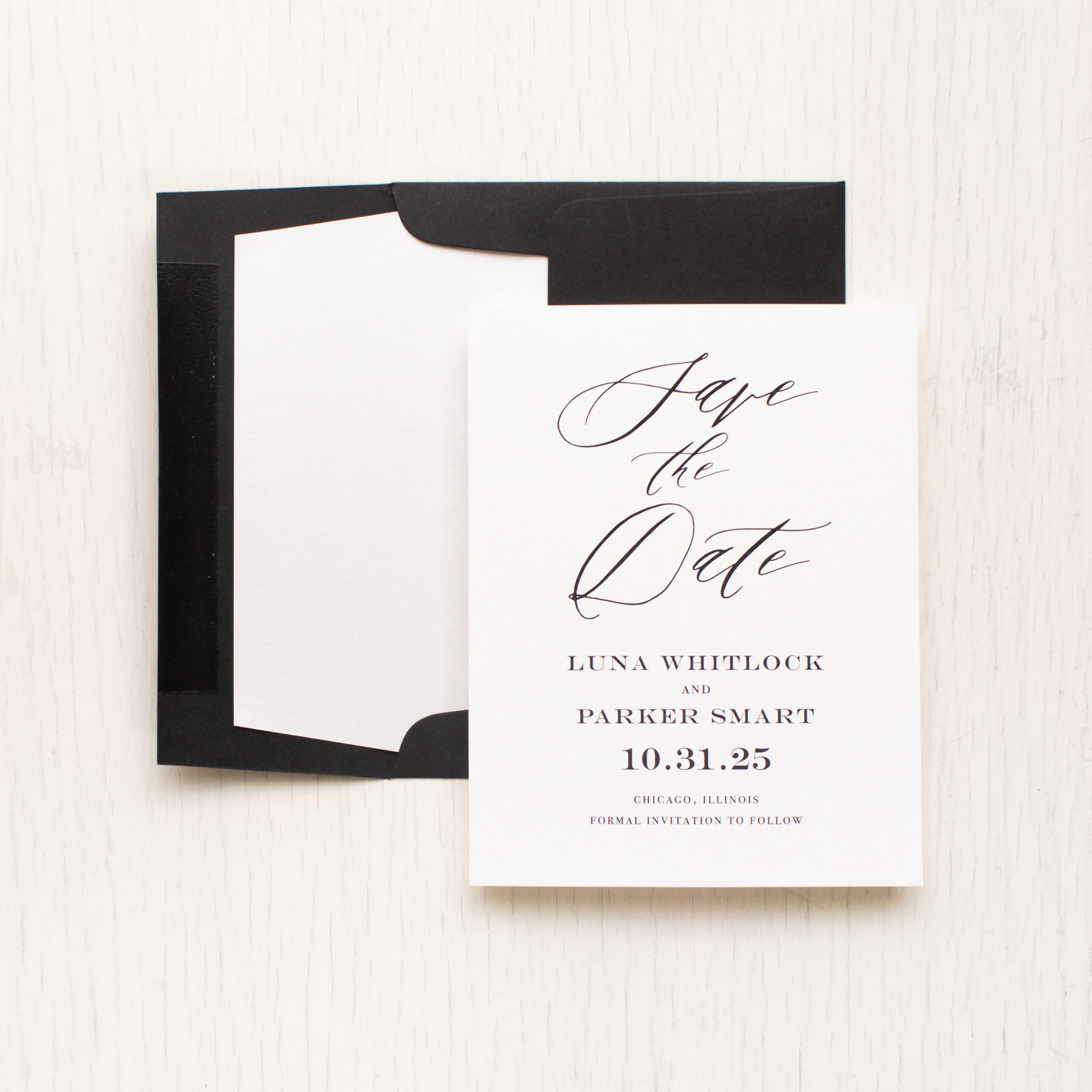 - To calculate pricing for these modern black & white save the dates, click on the place your order button below.