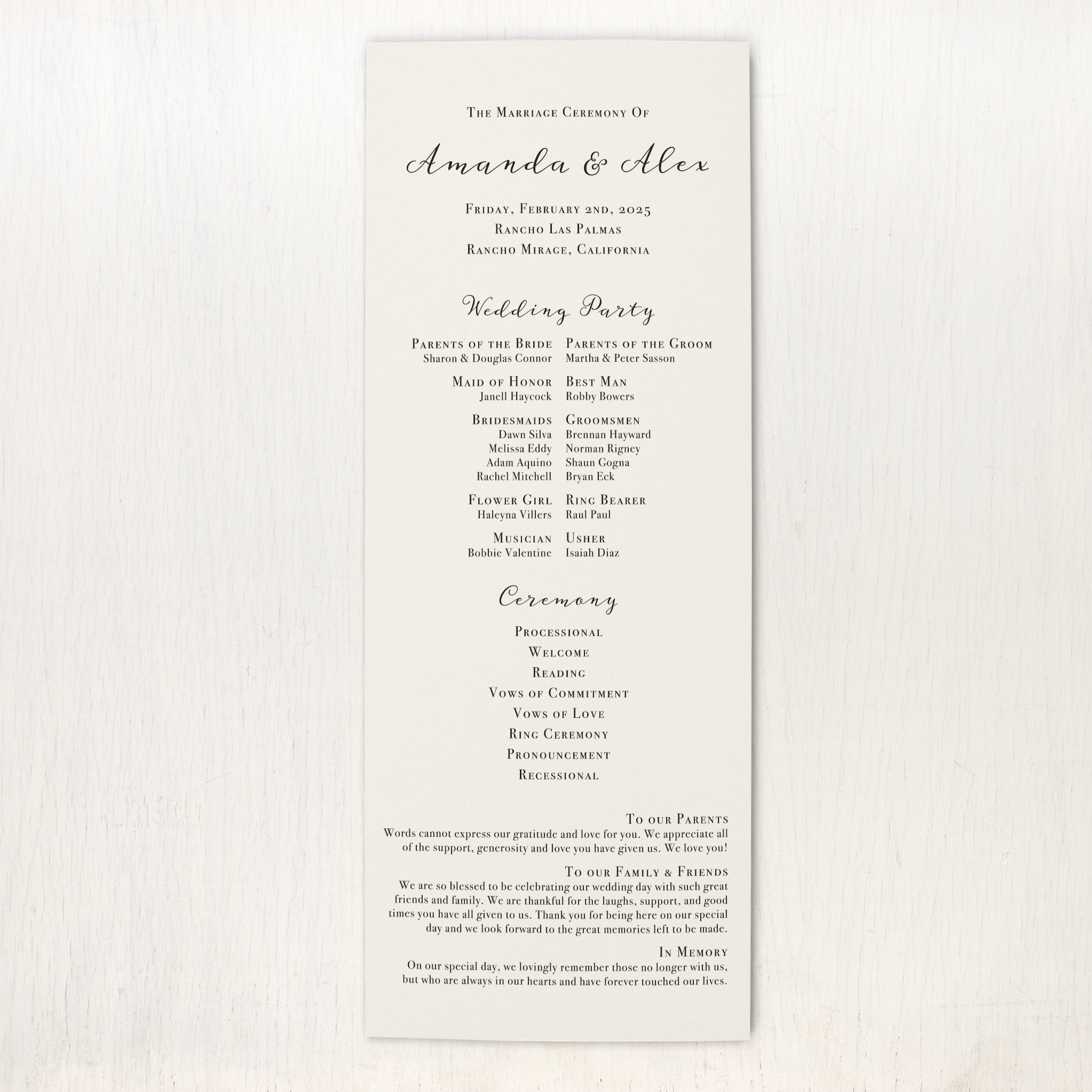 Share the details of your special day with Blush Script flat ceremony programs. Ceremony programs can be customized to match your wedding invites.