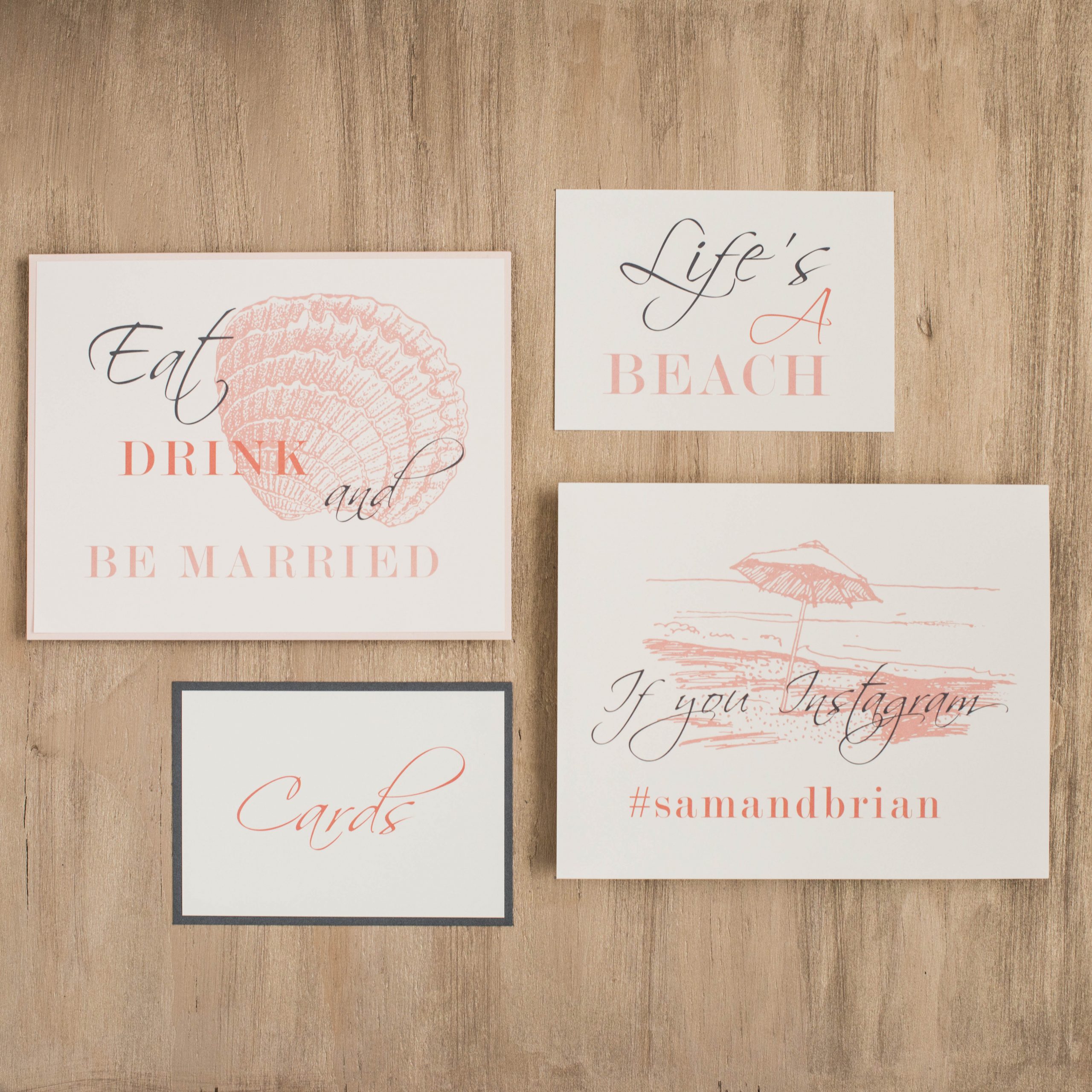 Create your own personalized signs that can be used in any way you imagine on your wedding day! These Beach Romance custom signs can be framed or mounted in a decorative stand.
