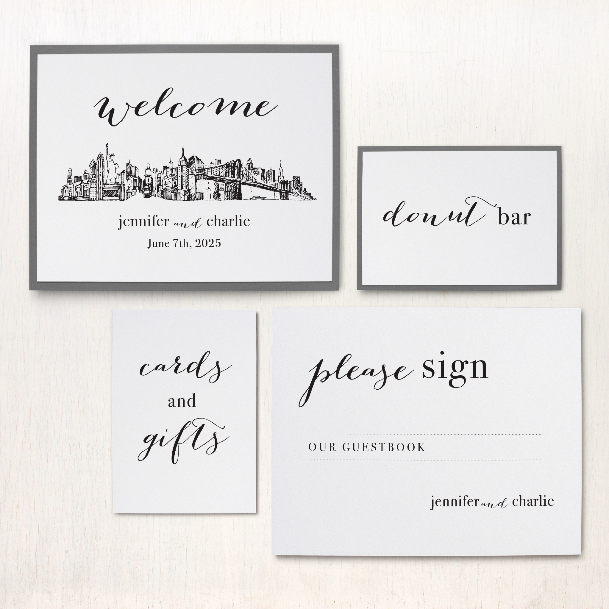 Create your own personalized signs that can be used in any way you imagine on your wedding day! These City Skyline custom signs can be framed or mounted in a decorative stand.