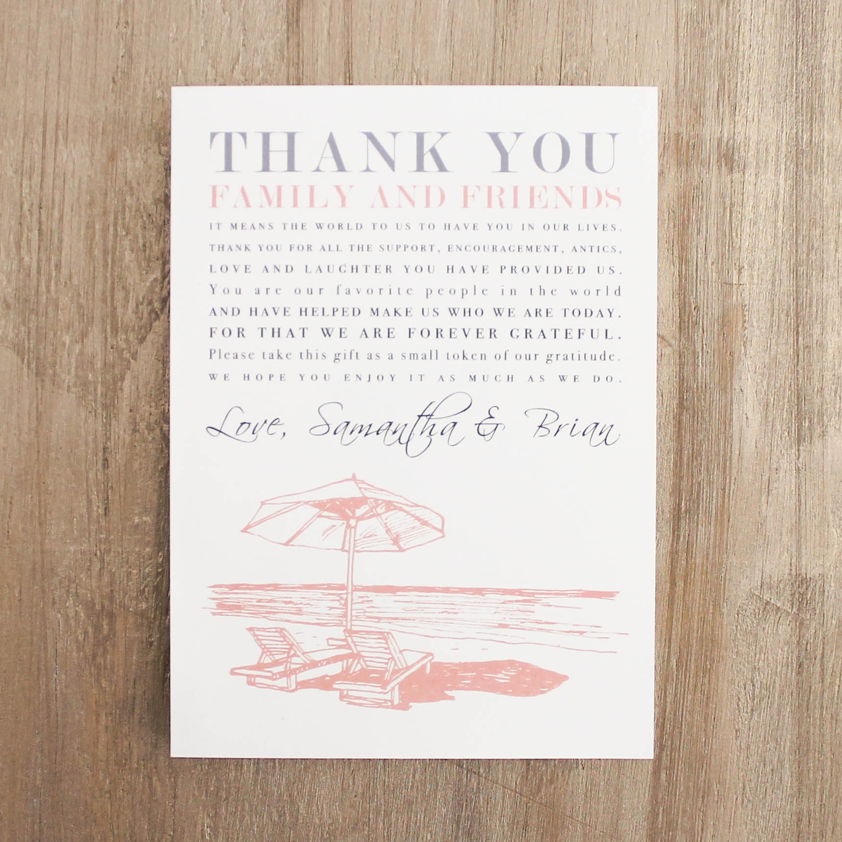 Thank you for being apart of our special day! Place one of these personalized Beach Romance reception thank yous on each plate setting to show guests your appreciation.