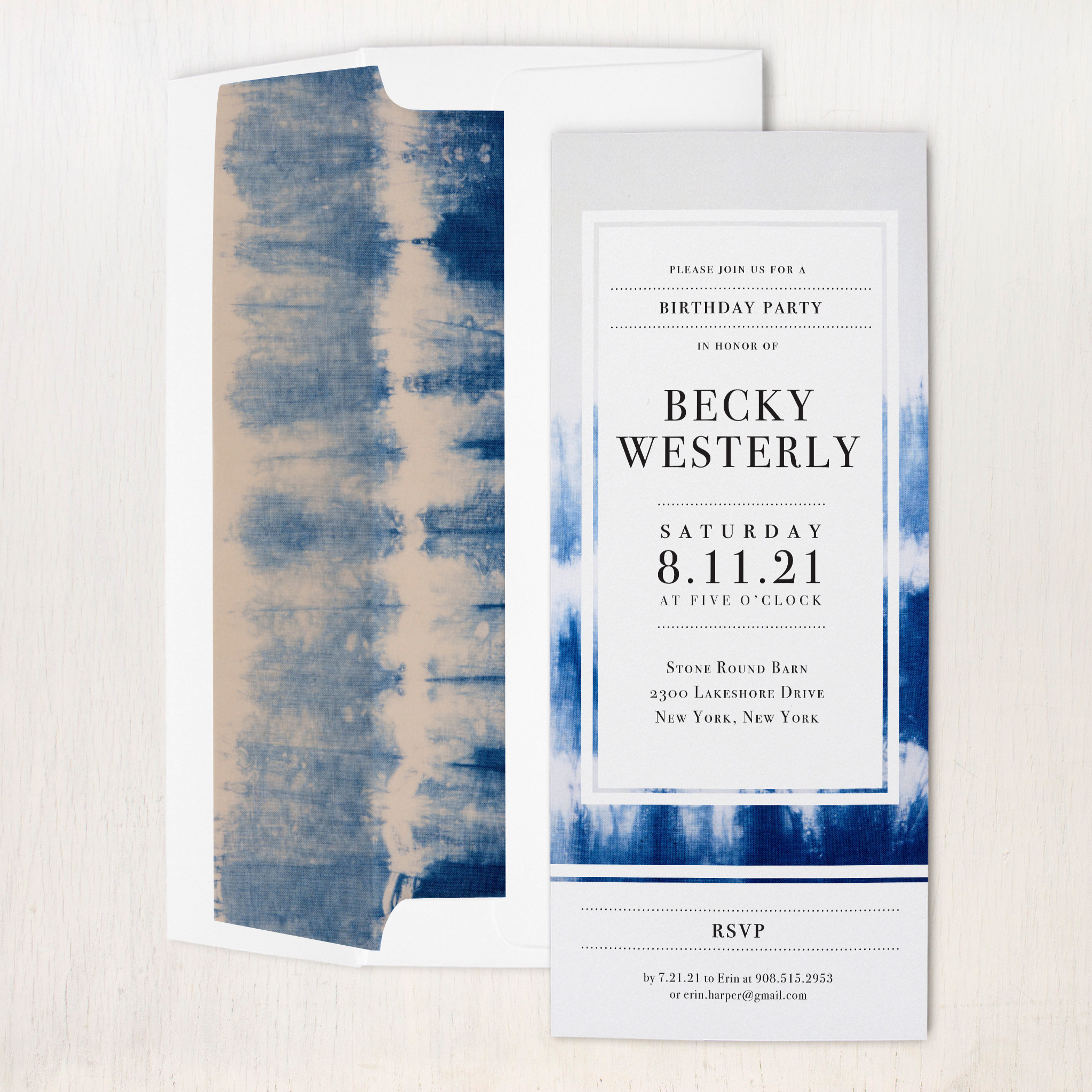 Indigo Dye Birthday Party Invitations