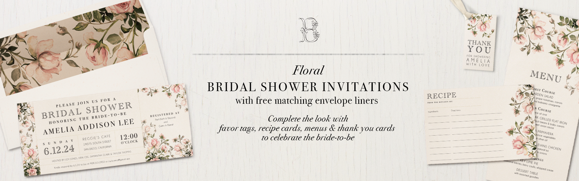 It’s a girly garden party! Delight your guests with these adorable garden party bridal shower invitations. With a variety of colors and patterns, you’ll be sure to find the perfect one for your bridal shower. Our unique long cards come printed on luxe pearl shimmer paper which creates a luxury look. They offer just the right amount of vintage chic flair! Each set includes handcrafted matching envelope liners printed on taupe paper. Add guest addressing to complete the look! This is a real time saver. Themes include: floral, garden, cactus, desert, tropical, greenery and beach. We have designs to match any style bridal shower!