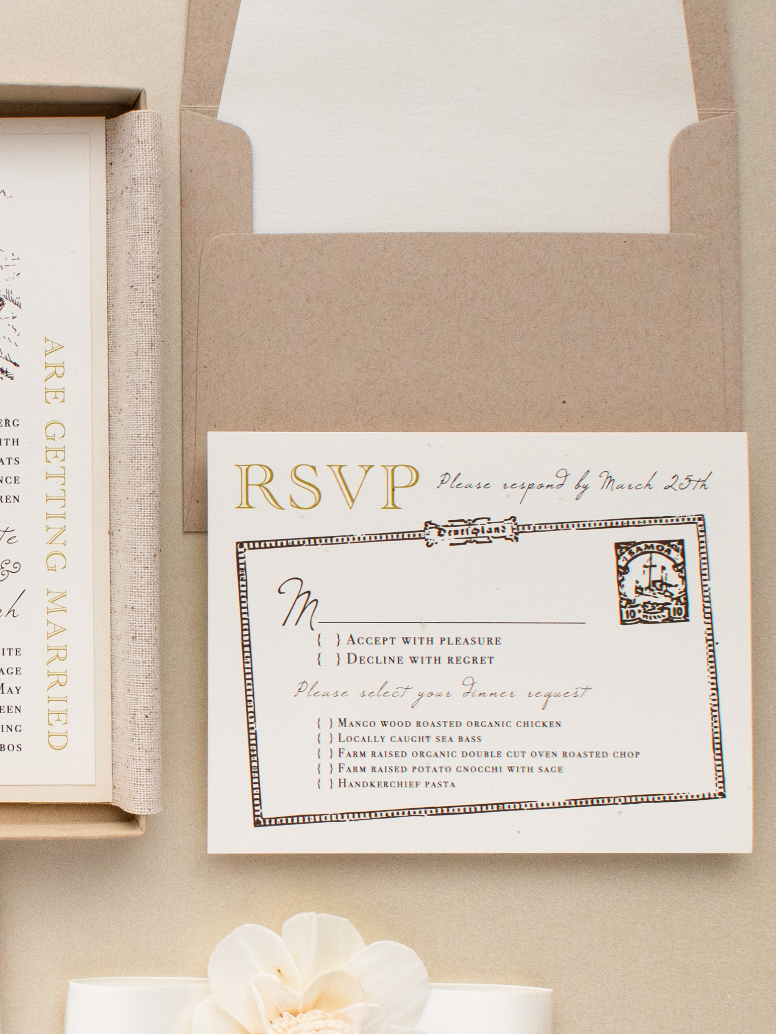 - RSVP envelope: taupe solid
