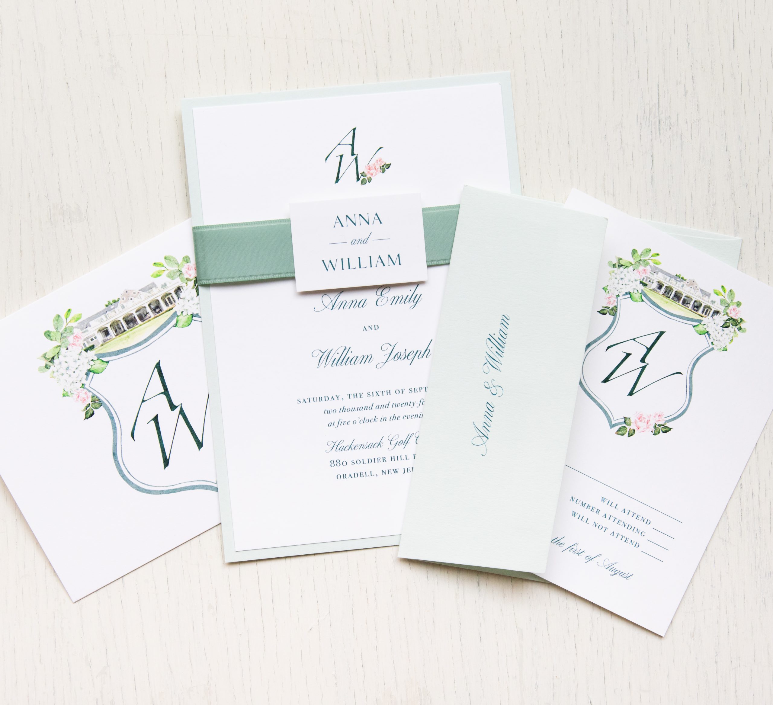 Provide your own wedding venue sketch that we can place on your main invitation (5×7 card) above or below wording and/or on a vellum jacket or envelope liner.