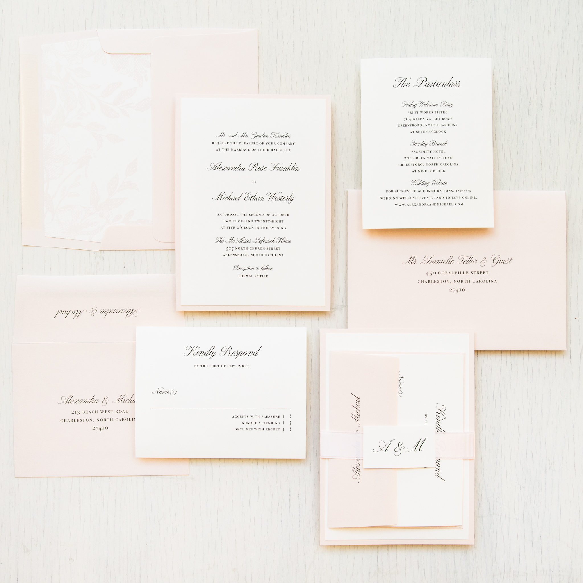 Work via email with a designer to perfect the invites before printing. During this time we will help you with proper etiquette and customizations. Our highly seasoned team will print and assemble your invites in-house. Guest envelope printing is free! Full invite assembly is free!