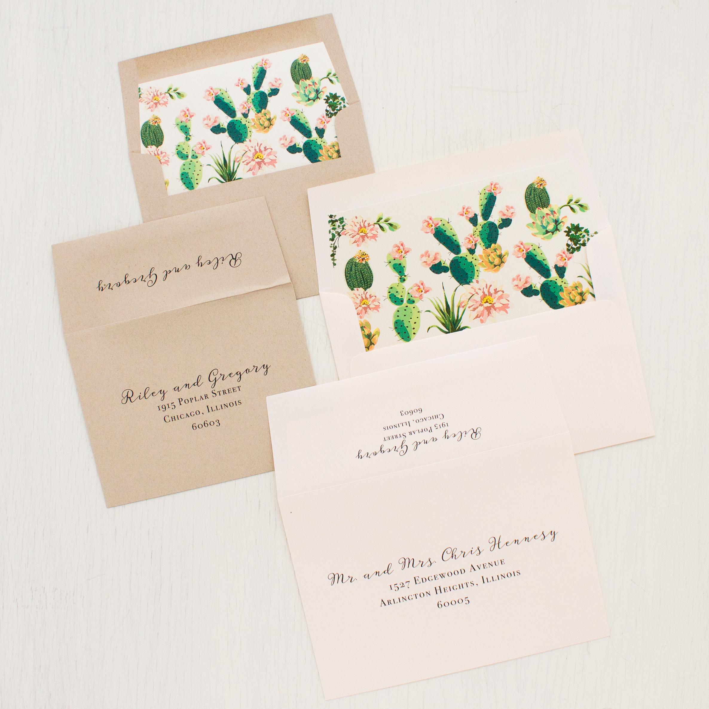 - RSVP envelope liner: blush cactus