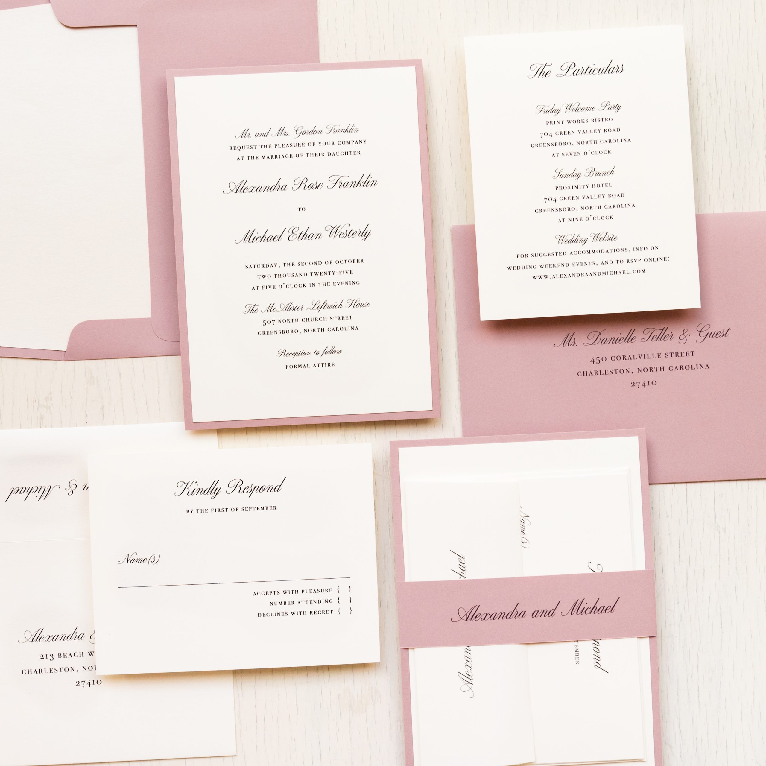 Dusty Rose Script Wedding Invitations