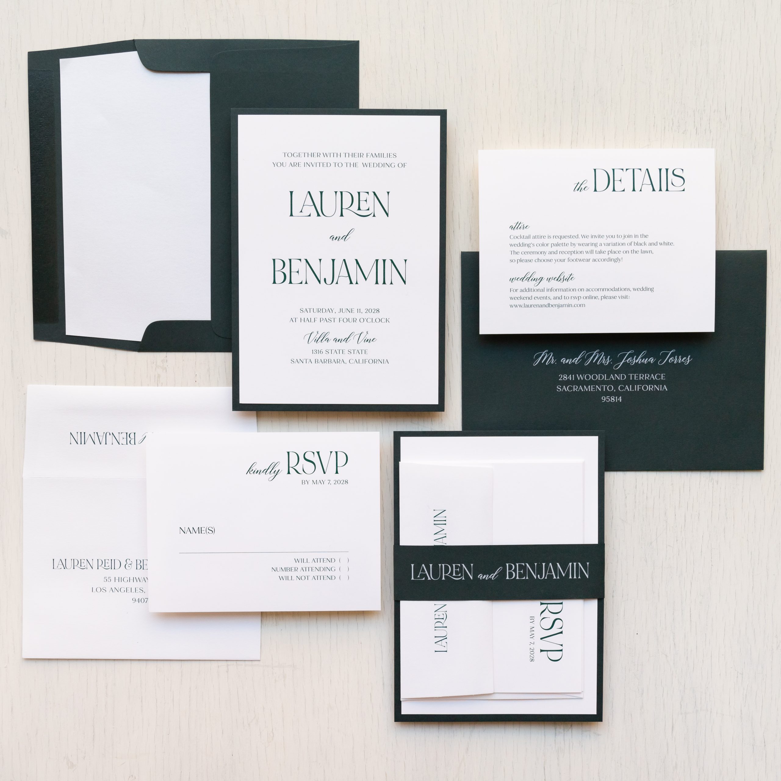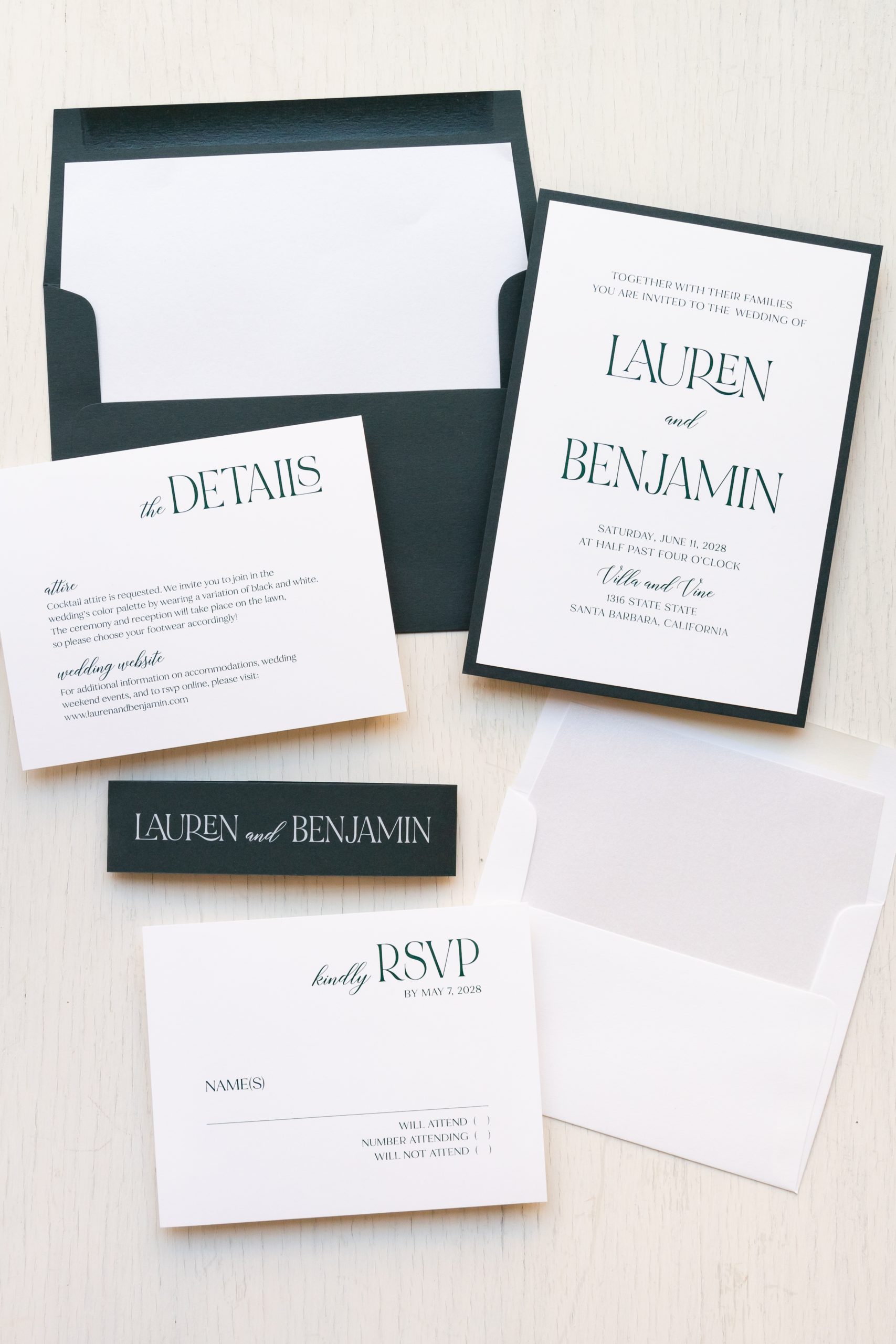 - RSVP envelope: white solid
