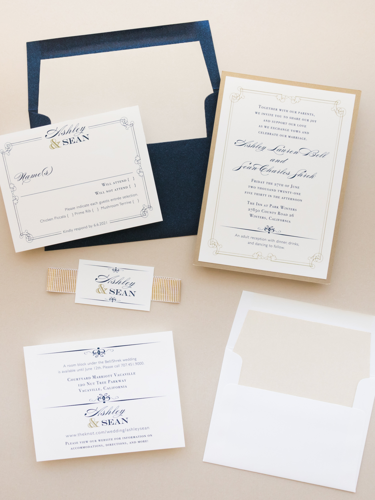 - RSVP envelope liner: champagne metallic