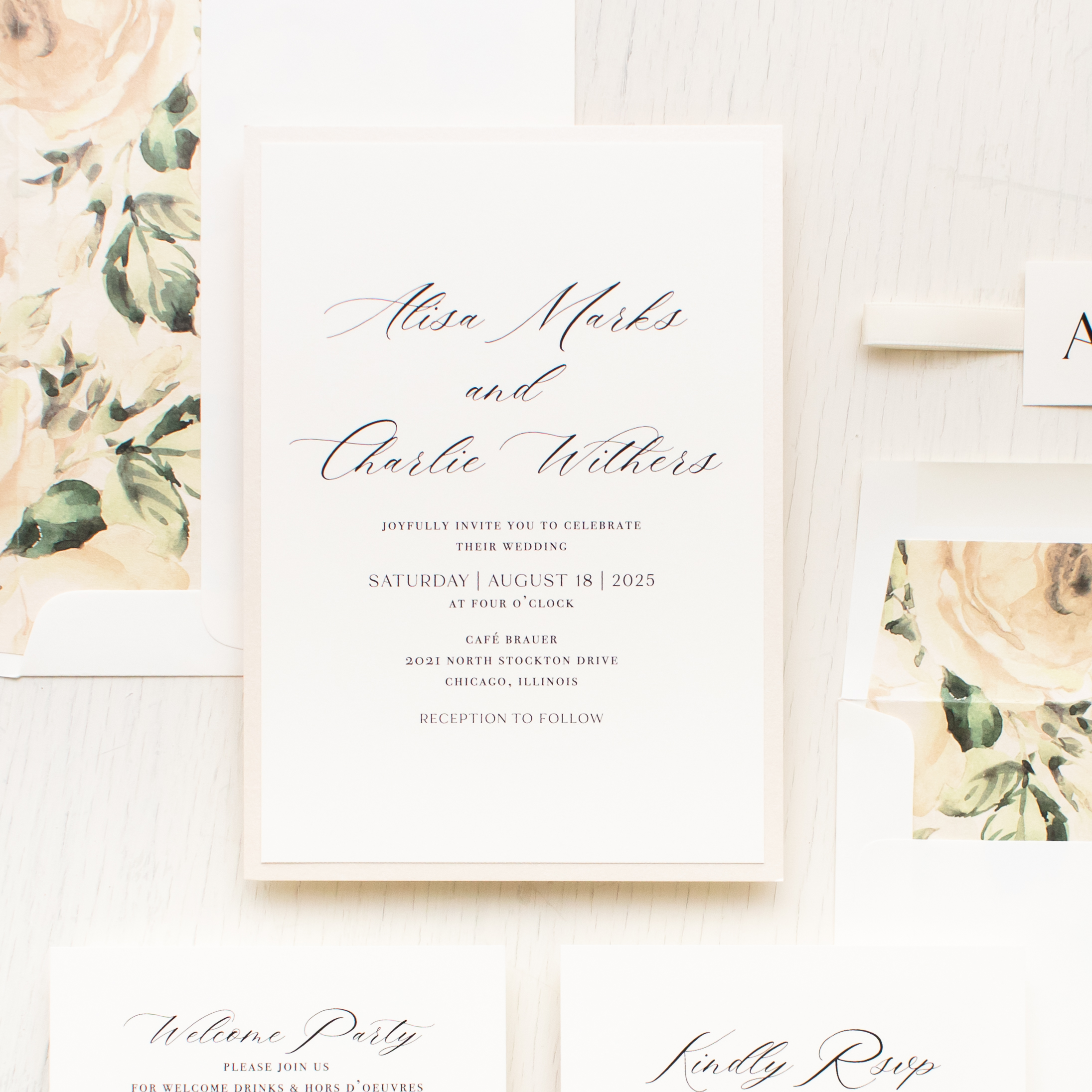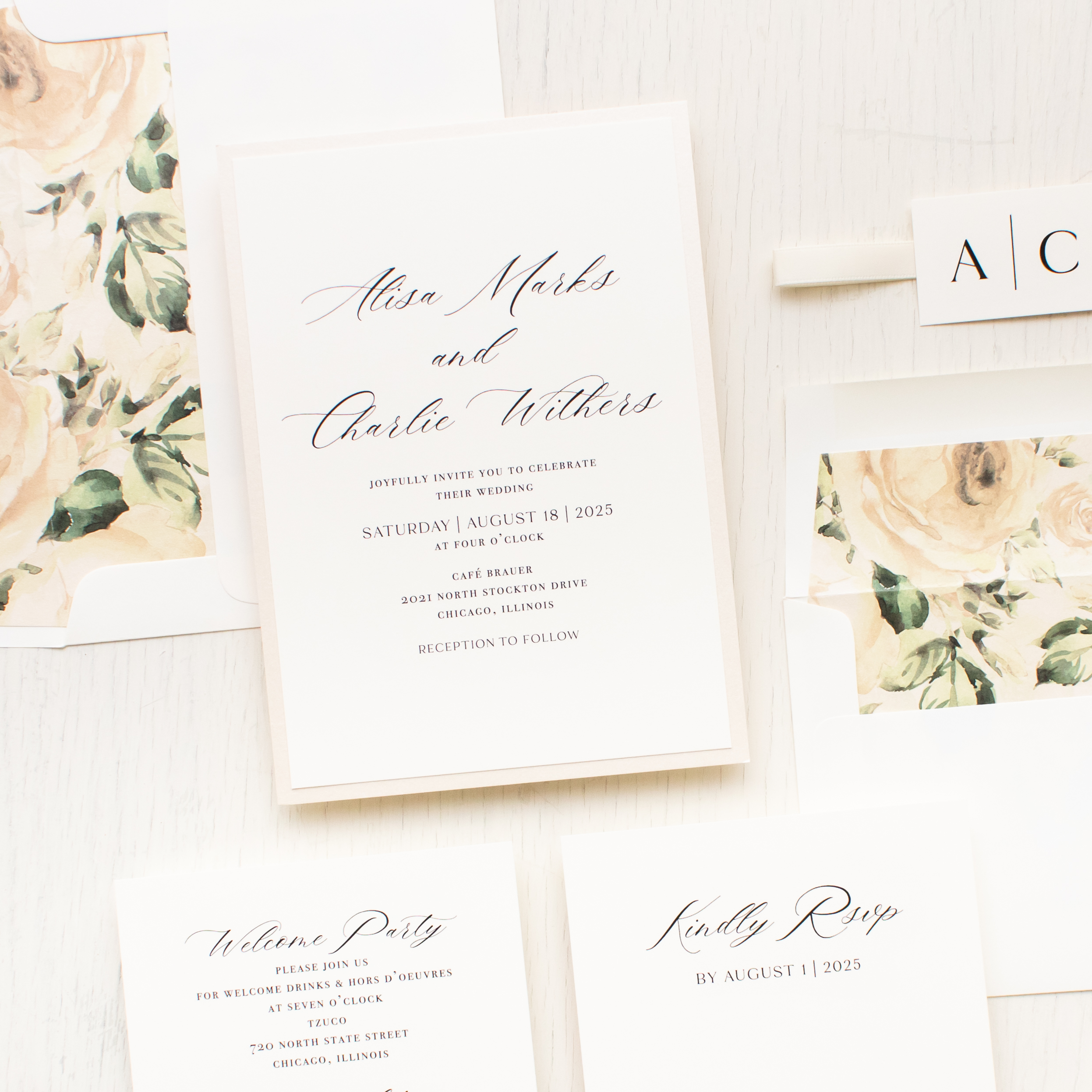 - RSVP envelope liner: minimal calligraphy