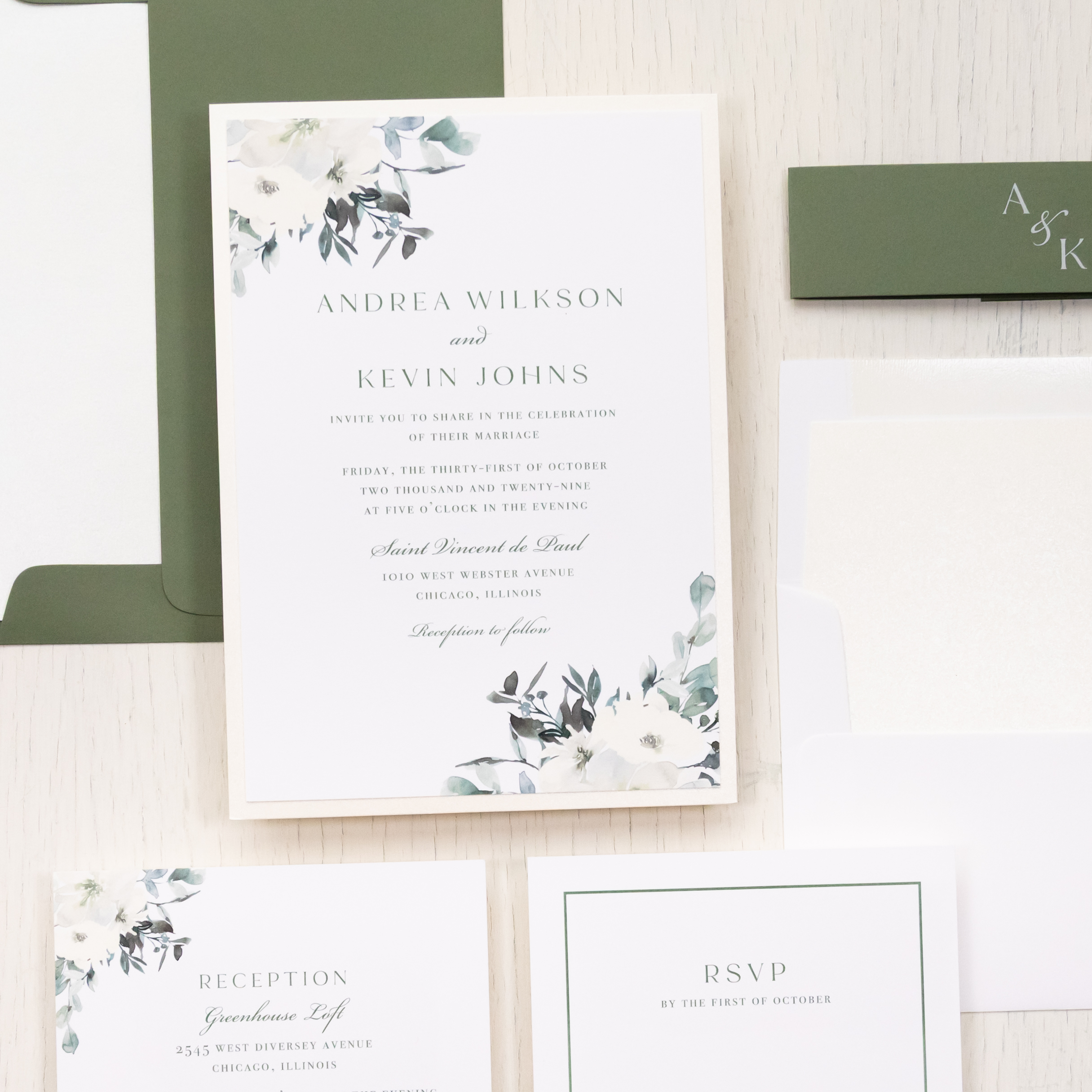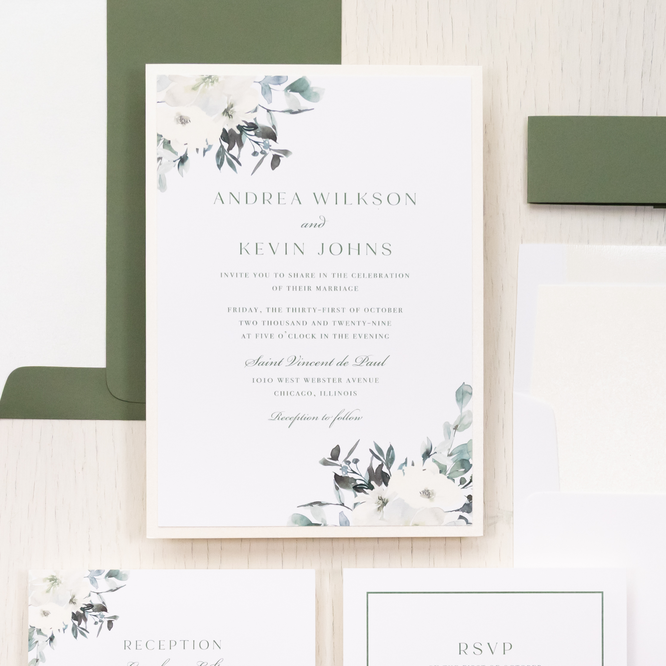Olive Floral Wedding Invitations