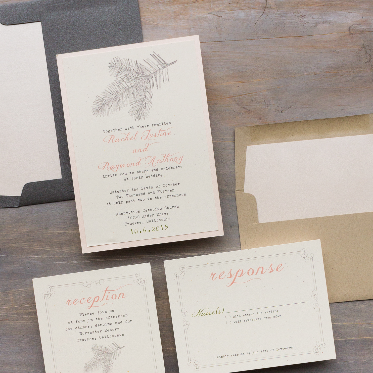 - RSVP envelope: taupe solid